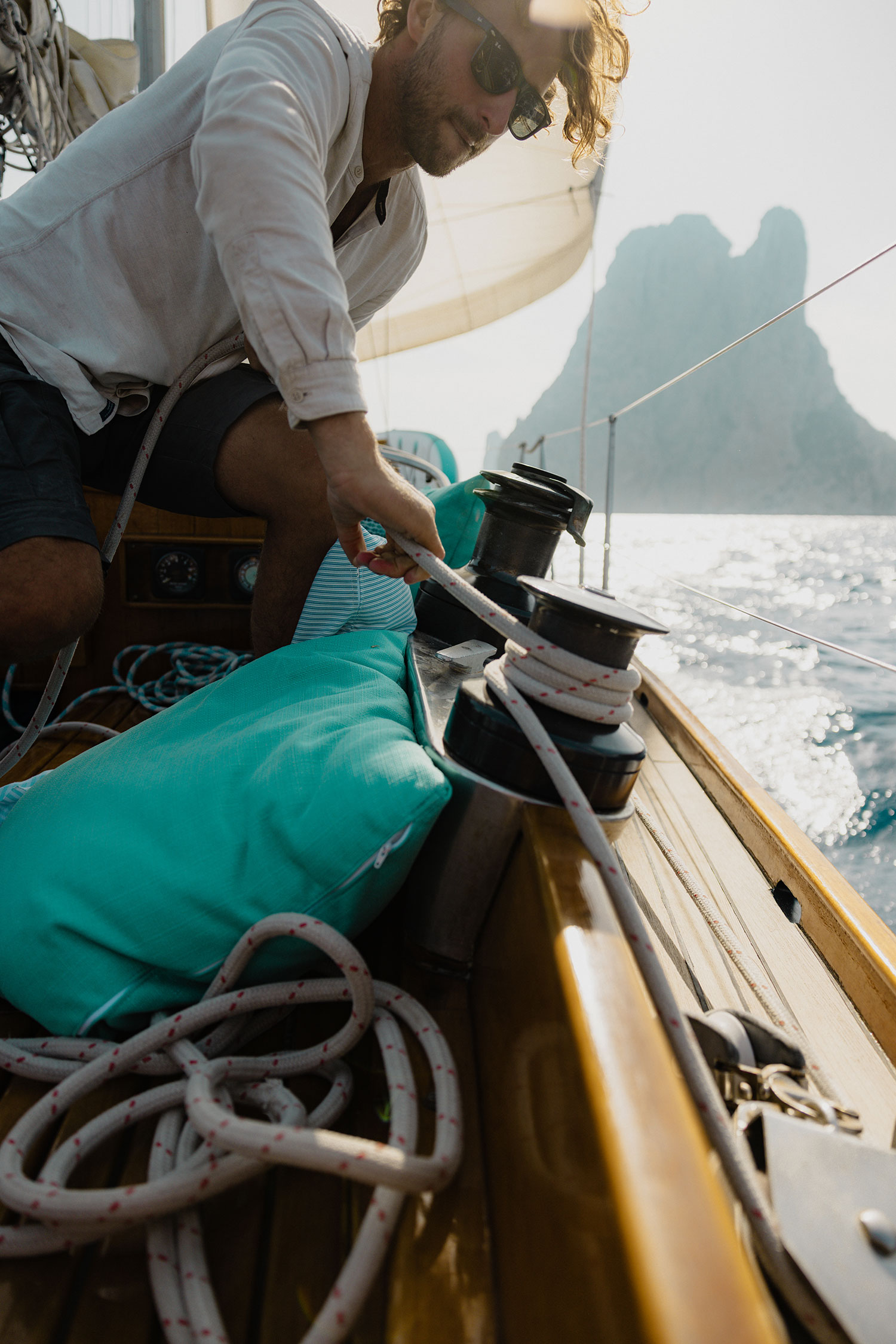 Myths, dramatic cliffs, and magnetic magic far from the masses. Sailing from Porroig, we pass the impressive cliffs of Es Cubells and find the hidden, historic quarry of Atlantis to reach the majestic rock of Es Vedrà—viewed from a privileged, private perspective.